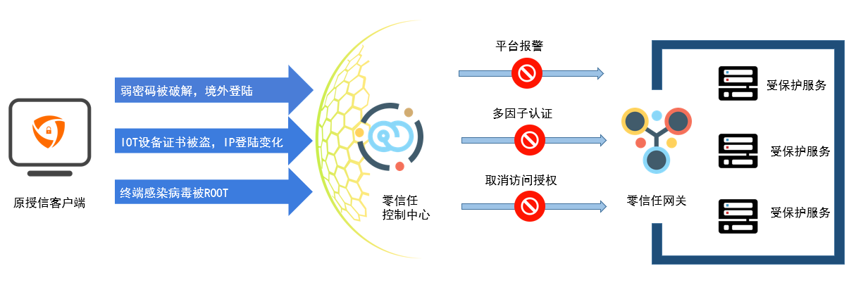 云涌零信任可以保護(hù)邊緣計(jì)算設(shè)備的身份安全與數(shù)據(jù)安全,使每個(gè)邊緣網(wǎng)關(guān)成為獨(dú)立的安全區(qū)段,網(wǎng)關(guān)內(nèi)業(yè)務(wù)服務(wù)受零信任平臺保護(hù)。