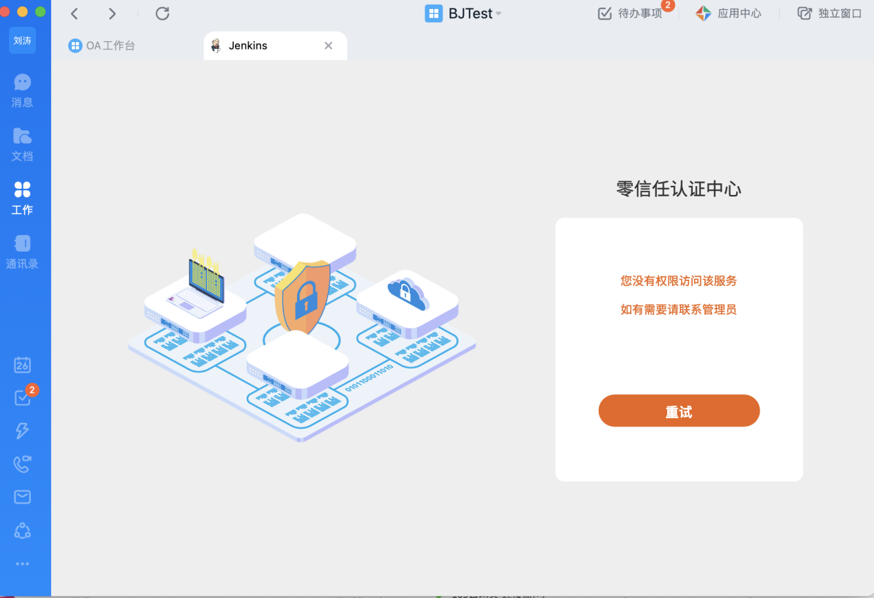 用戶登錄釘釘工作臺,看到的下面兩個應(yīng)用即為受零信任保護(hù)的私有部署Web應(yīng)用: