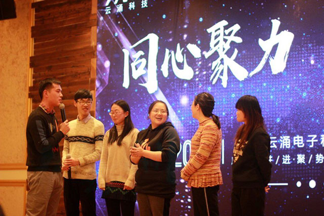 下午四點公司在泰州鵬欣大酒店隆重舉行了2019年云涌科技年會,年會主題為"同心聚力,共創(chuàng)未來"。公司董事長高南在會議中總結(jié)了過去一年的輝煌成績,同時謀劃了未來云涌科技的技術(shù)及產(chǎn)品方向。