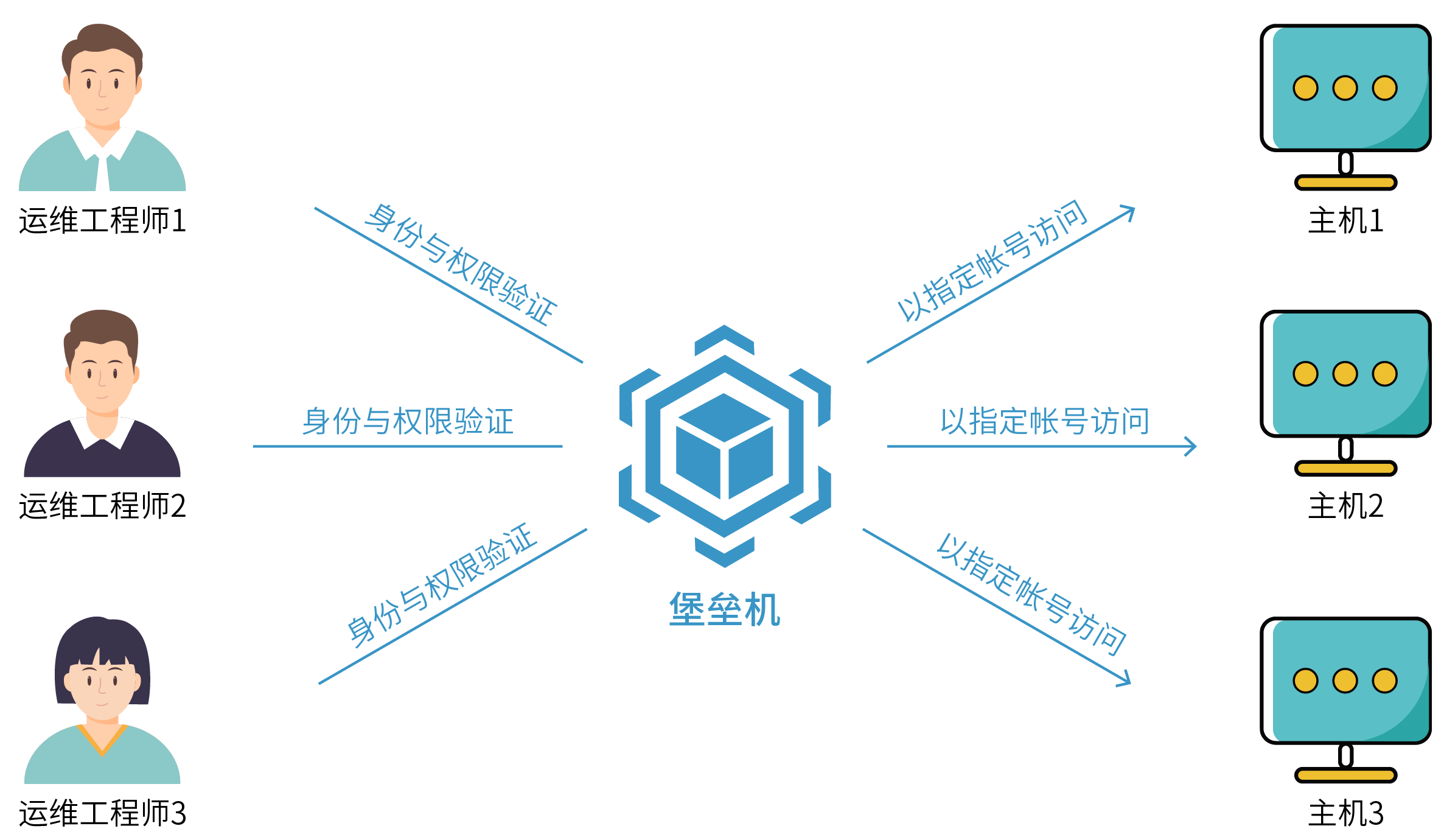 一方面堡壘機(jī)可通過遠(yuǎn)程運(yùn)維,隱藏資產(chǎn)的真實(shí)地址,解決資產(chǎn)信息暴露問題,另一方面通過提供多賬號(hào)統(tǒng)一運(yùn)維收口和權(quán)限細(xì)粒度劃分管理,實(shí)現(xiàn)便捷運(yùn)維和靈活規(guī)范化管理,最后通過提供全面的運(yùn)維日志,對(duì)整個(gè)運(yùn)維過程,包括人員操作行為提供有效監(jiān)控,得以保證互聯(lián)網(wǎng)企業(yè)在不斷發(fā)展過程中的持續(xù)穩(wěn)定。