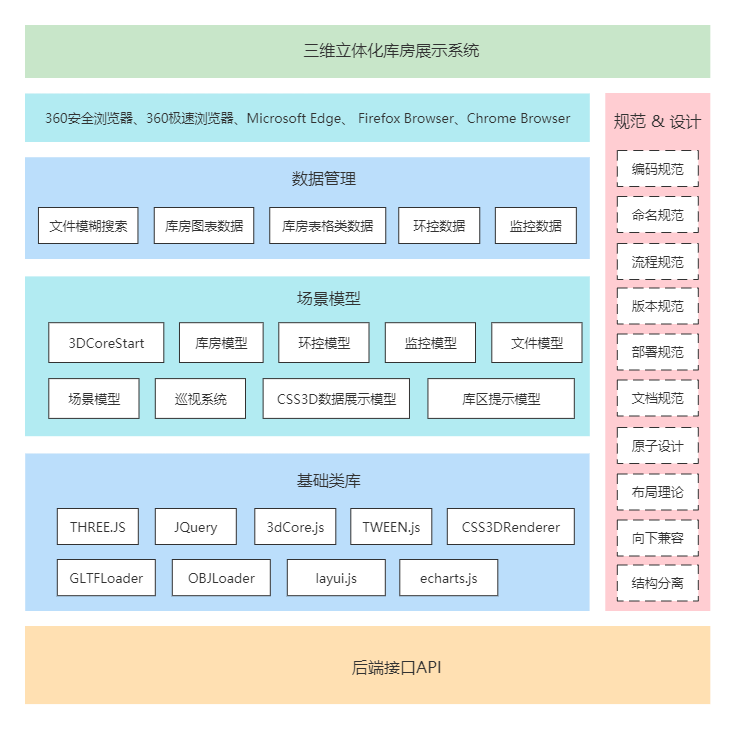 - 通過(guò)三維數(shù)字化庫(kù)房,可實(shí)現(xiàn)業(yè)務(wù)數(shù)據(jù)查詢,遠(yuǎn)程檔案設(shè)備操作,全景環(huán)控系統(tǒng)設(shè)置,安全態(tài)勢(shì)感知上報(bào)等功能,助力用戶數(shù)字化轉(zhuǎn)型。