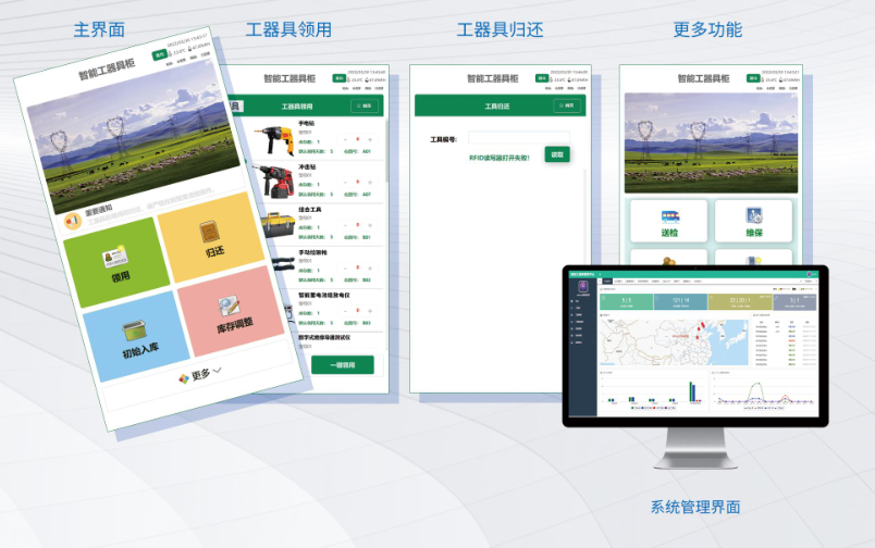 智能工器具管理系統(tǒng)是針對(duì)供電所普通工器具和安全類工器具管理的一整套解決方案。根據(jù)存儲(chǔ)工具的環(huán)境要求不同,設(shè)置不同的存儲(chǔ)柜和管理方式。系統(tǒng)采用RFID標(biāo)簽對(duì)工具進(jìn)行識(shí)別和管理,通過智能工具柜的標(biāo)簽識(shí)別和智能控制,完成工具使用過程中的自助借還、領(lǐng)用引導(dǎo)、錯(cuò)誤提醒以及自動(dòng)盤點(diǎn)等功能。