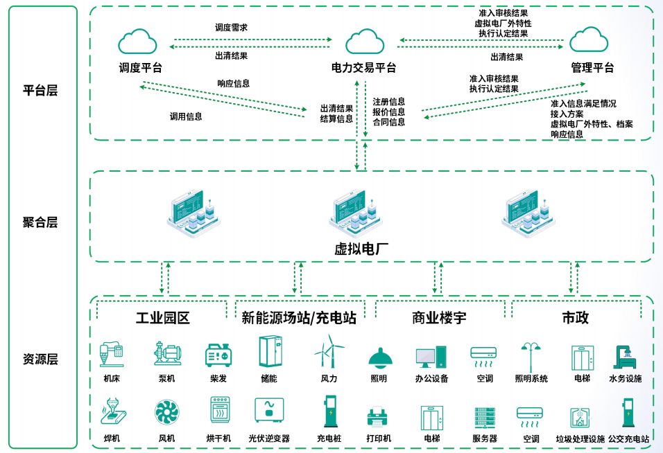 公司是泰州“首家”完成虛擬電廠注冊的企業(yè),虛擬電廠作為一種智慧能源管理系統(tǒng),被稱為能源產(chǎn)業(yè)鏈的“最后一公里“,其核心是將分布式的發(fā)電設(shè)備、儲能系統(tǒng)、電動汽車、可調(diào)節(jié)負(fù)荷等資源聚合起來,通過智能算法和通信技術(shù)統(tǒng)一調(diào)度,使其能夠像傳統(tǒng)發(fā)電廠一樣參與電力市場交易或響應(yīng)電網(wǎng)需求,從宏觀層面上,實現(xiàn)能源的高效利用和電網(wǎng)穩(wěn)定運(yùn)行。